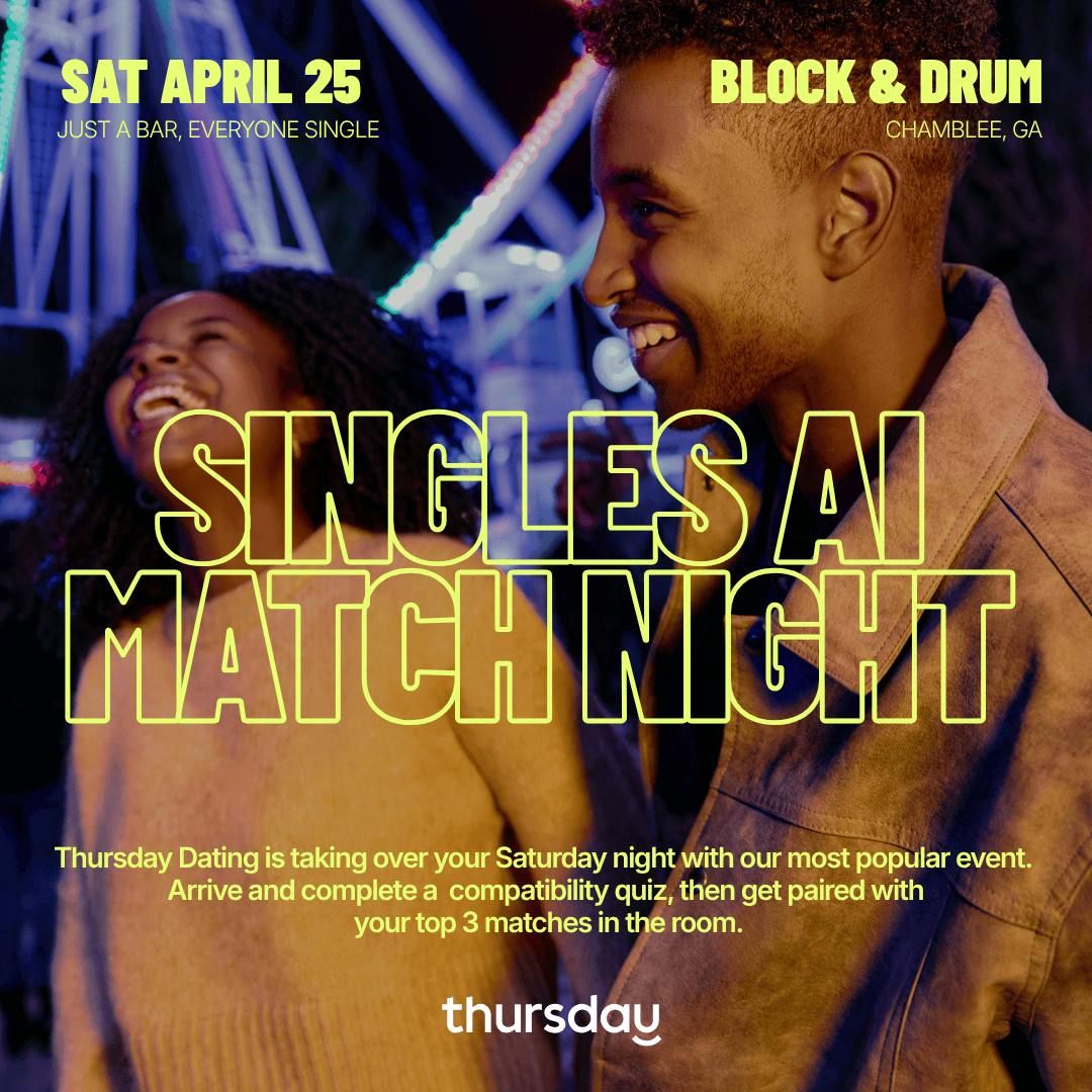 Spring is the season of fresh starts, longer days, and finally putting yourself out there. So, we figured — what better time to let the algorithm do the heavy lifting? 🌸On Saturday, April 25th, Thursday Dating is bringing our most popular event to one of Atlanta's most unique new venues — Block & Drum in Chamblee — for another Singles AI Match Night, a night designed for singles who are ready to stop overthinking and start actually connecting.