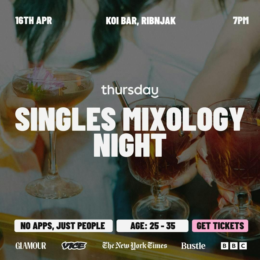 Just a bar. Everyone single. Because 2026 is about meeting IRL, not swiping.Hey, Zagreb!A Singles Mixology Night is being hosted at KOi cocktail bar on Thursday, April 16th – come and join us! This relaxed meet-up is designed for a laid-back evening. It's also vibrant. There will be cocktails. There will be good conversation. You'll have the chance to meet someone new. There's no pressure, just the right crowd and a naturally social atmosphere!Located in the heart of Zagreb by Ribnjak, KOi blends a daytime coffee destination with an evening cocktail bar, attracting a crowd that values quality, openness, and good vibes.Great vibes. Open hearts. The right crowd. One rule. Grab your tickets.Early Bird – turn up before 8PM for guaranteed entry