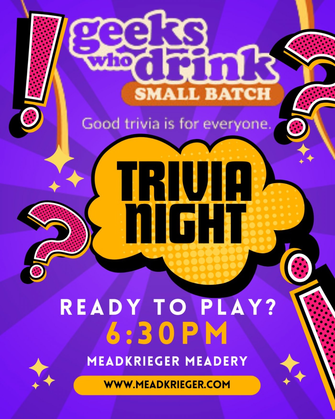 Meet your new favorite Thursday tradition: Geeks Who Drink brings the best trivia in town to MeadKrieger. Gather your smartest (or silliest) friends, grab a drink, and prove your brainpower in the most fun quiz night around—action starts at 6:30 PM.