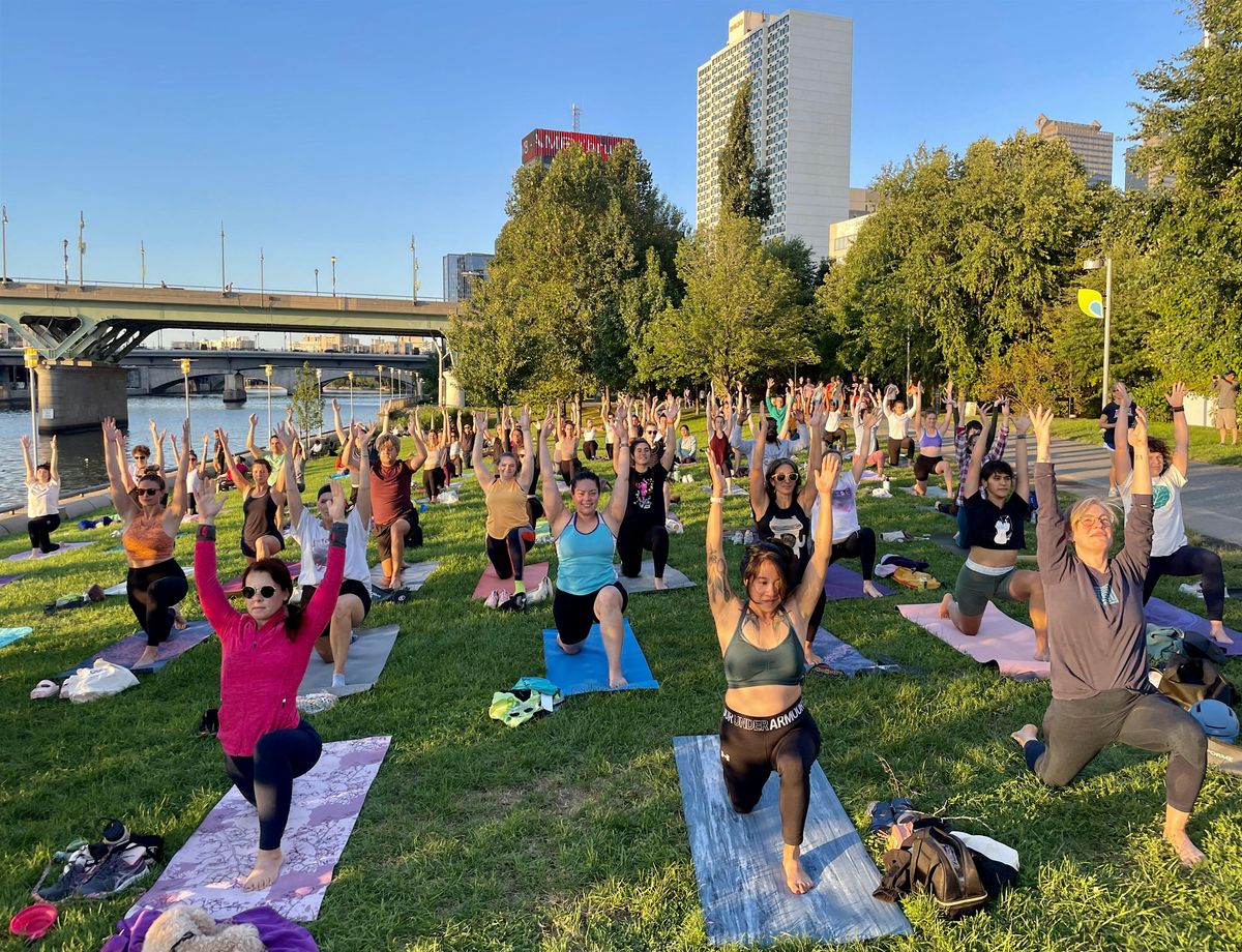 Community & donation based yoga at the Schuylkill River banks, 25th & Locust. Same teachers, same hearts!