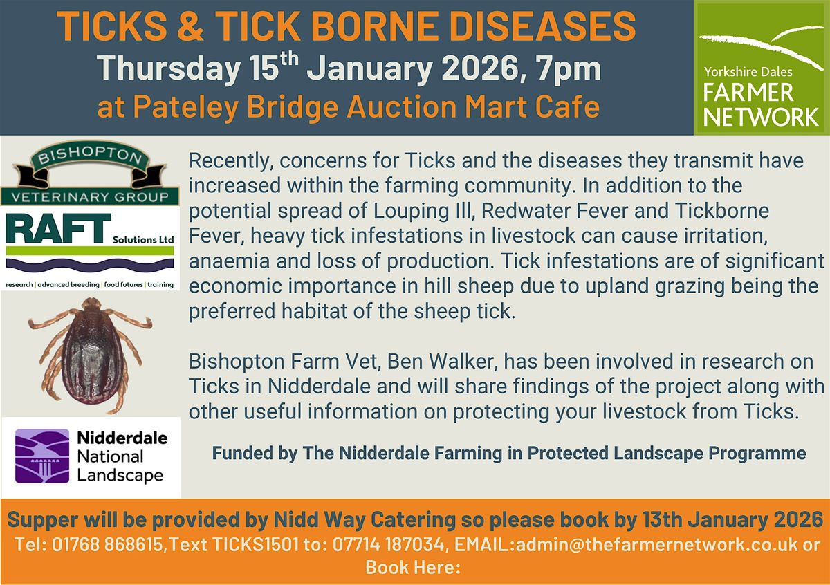 Bishopton Farm Vet, Ben Walker, has been involved in research on Ticks in Nidderdale and will share findings of the project along with other useful information on protecting your livestock from Ticks.