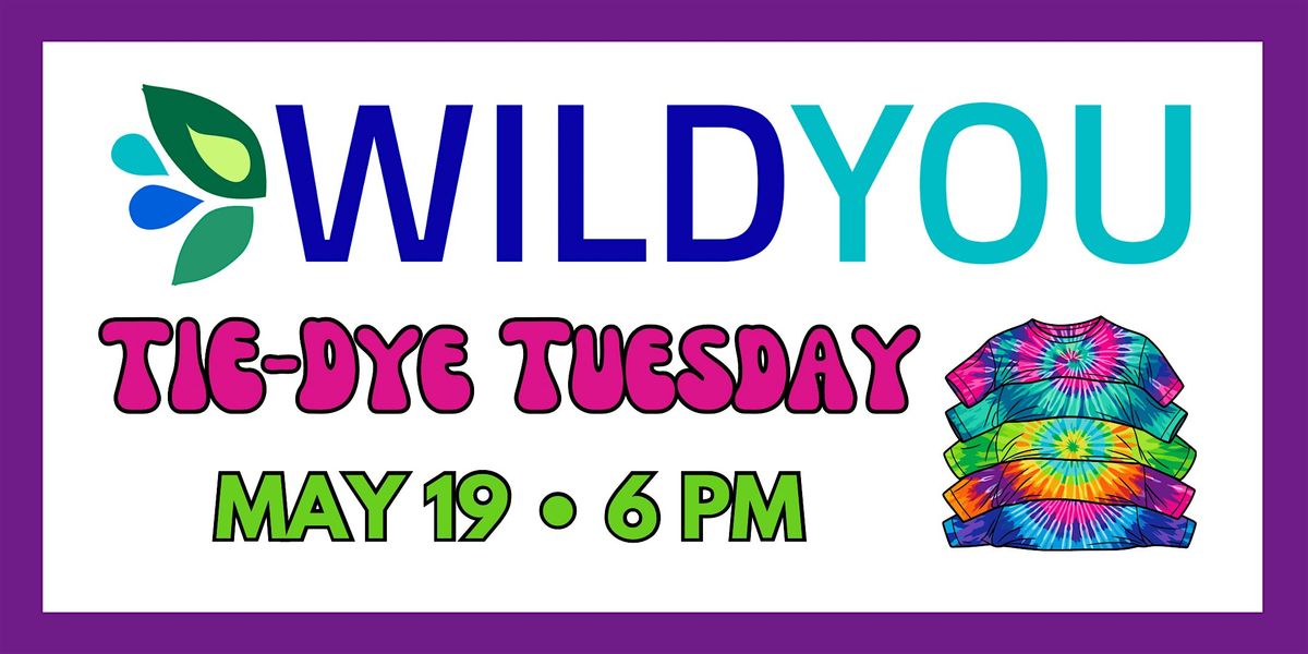 Come join the fun at Wild You's Tie-Dye Tuesday! Bring an item to tie-dye for free, or purchase a t-shirt from us for $5. If you choose to buy a shirt from us, please register beforehand so we can ensure that we have your size available. If you’re bringing your own items to tie-dye, there’s no need to register.