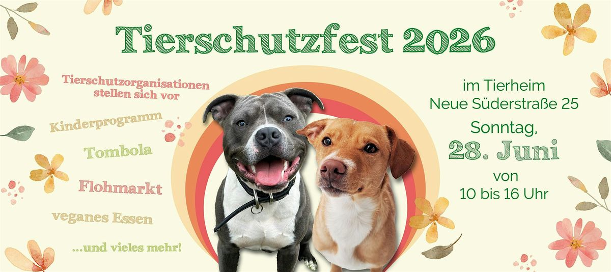 Gemeinsam mit euch möchten wir den Tierschutz bei guter Laune und sonnigem Wetter feiern! Es gibt ein Kinderprogramm mit Basteln und Schminken, leckeres veganes Essen, spannende Tierheimführungen und eine Tombola mit tollen Preisen: Bücher, Freikarten für Hamburger Kinos, Theater, Festivals und Freizeiteinrichtungen und auch hochwertiges Zubehör für die vierbeinigen Begleiter*innen sind nur einige Beispiele für die Gewinne beim diesjährigen Tierschutzfest. Auch mit dabei: Unser beliebter Flohmarkt und zahlreiche Tierschutzorganisationen, die sich und ihre wichtige Arbeit vorstellen.