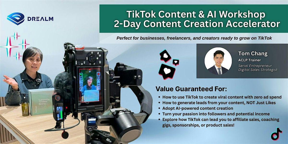 This 2-day workshop gives you the complete TikTok + AI system to plan, script, film, edit and even clone your voice or face all without needing expensive equipment or prior experience.