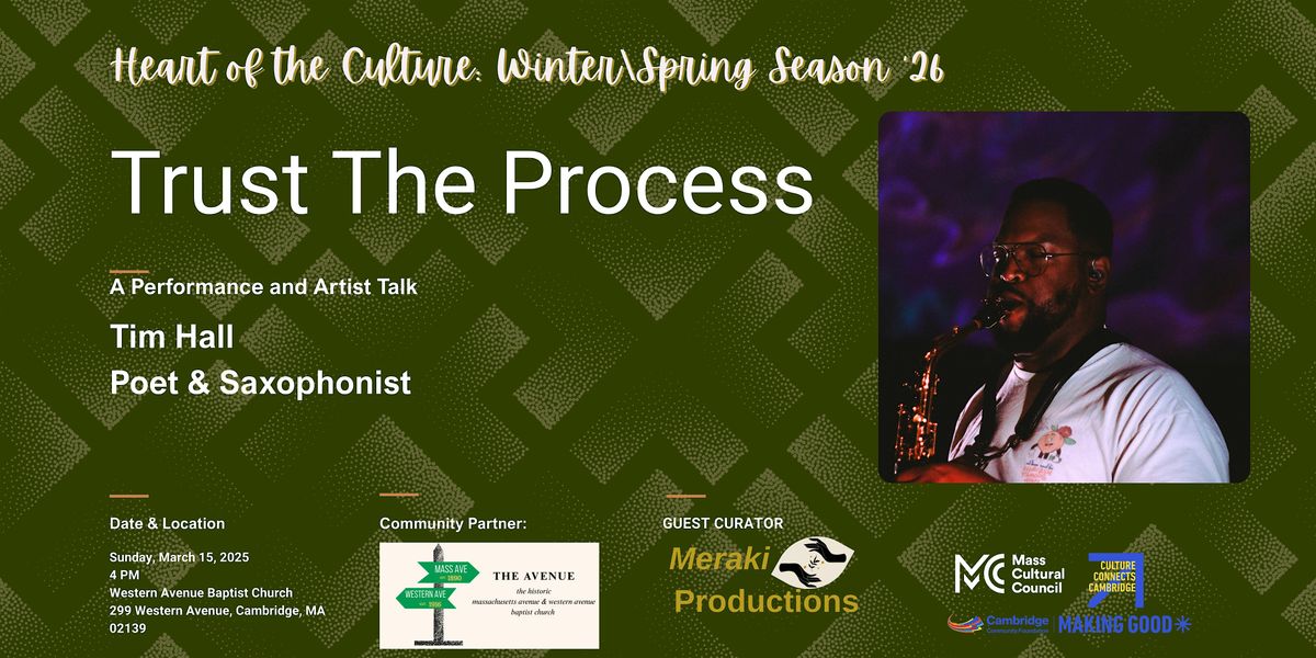 This event features poet and saxophonist Tim Hall. Join us as he shares work from his latest project Trust The Process.