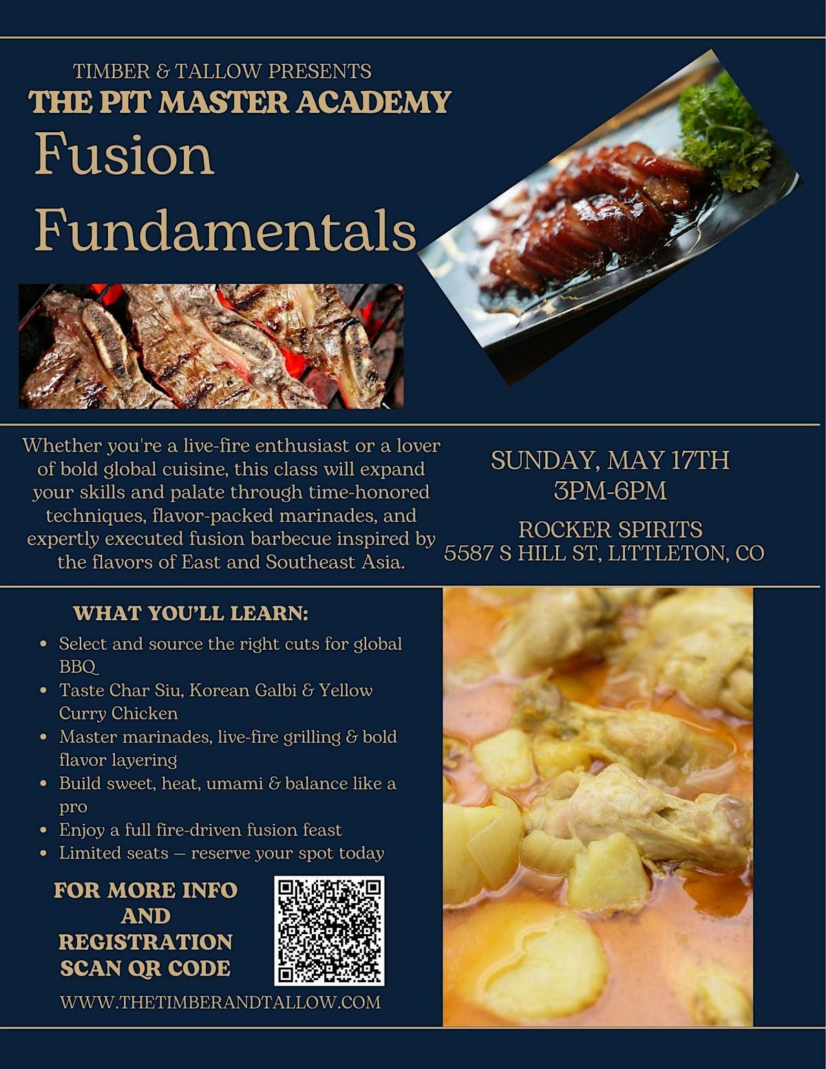 You’ll learn how to build layered marinades, balance sweet heat and umami, and execute fire-driven techniques for Char Siu pork, Korean Galbi (short ribs), and Yellow Curry Chicken. From sourcing and prep to grilling, caramelization, and braising, we break down the exact methods we use to create depth, balance, and unforgettable flavor.