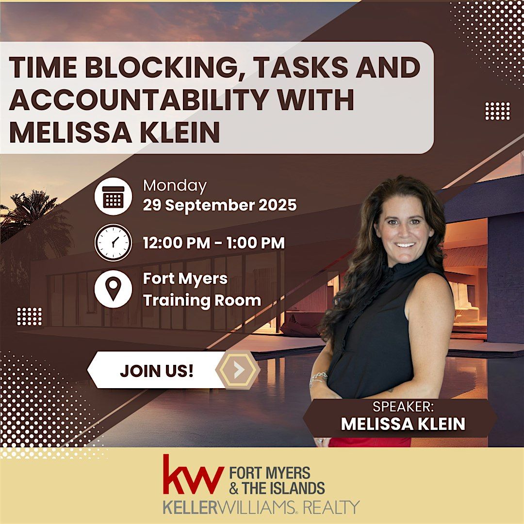 Join us for "Time Blocking, Tasks, and Accountability" with productivity expert Melissa Klein!