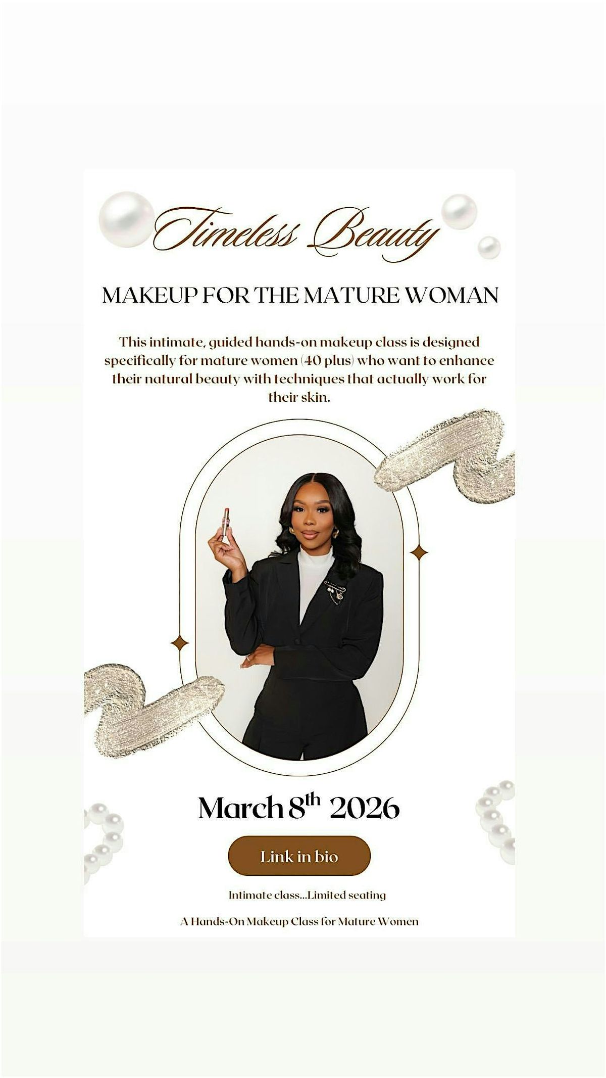 This intimate, hands-on class is created specifically for mature women who want to feel confident in their makeup again.