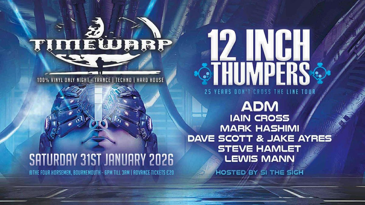 Timewarp returns to The Four Horsemen basement for 2026 with the first date of The 12 Inch Thumpers “Don’t Cross The Line” 10 date world tour. Joining them is ADM & the Timewarp residents.