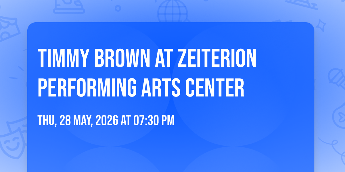 π Step into a world of wonder at Timmy Brown at Zeiterion Performing Arts Center, where extraordinary moments await! ποΈ Located at Zeiterion Performing Arts Center in dynamic New Bedford, MA, this event will become the talk of the town. π Join us on May 28th, 2026 at 07:30 PM for a celebration that defies the ordinary. β¨ This curated experience brings together the best of entertainment, culture, and community spirit. Every detail has been thoughtfully planned to ensure an unforgettable experience for all our guests. π― Take advantage of this opportunity to be part of something special. π Early registration is recommended as space is limited!