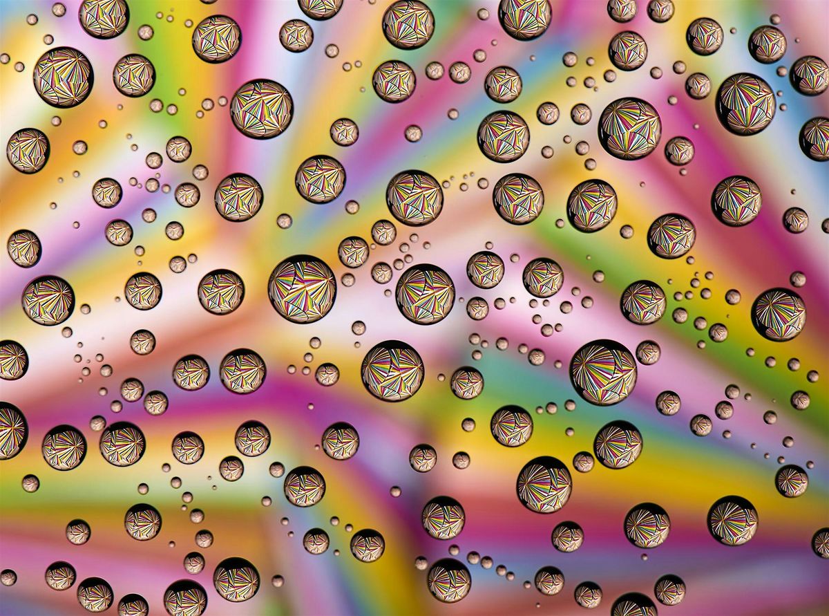 Info: A droplet is like a camera lens: It magnifies, focuses, and creates a new reality. When you place dozens of water droplets on a sheet of glass, a kaleidoscope of colors explode into multi-layered imagery. Change the droplet to oil, and spherical worlds emerge into infinite possibilities.