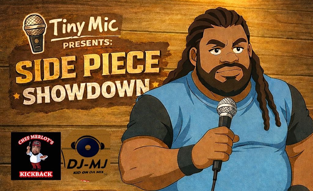 Tiny Mic is back!!! New line up even more laughs these comics are here to give you gut busting laughs to make your night a night to remember. Don't forget Chefmerlotskickback is back with us along with DJ MJ come ready to eat and to laugh because this night is gonna be awesome!!!!
