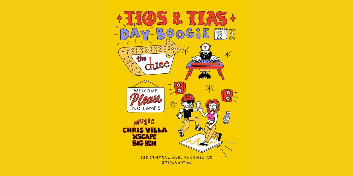 Tios & Tias DAY BOOGIE — a day party for old souls, good music, and unforgettable energy. This is where friends become familia, memories are made, and the dance floor stays moving all day.