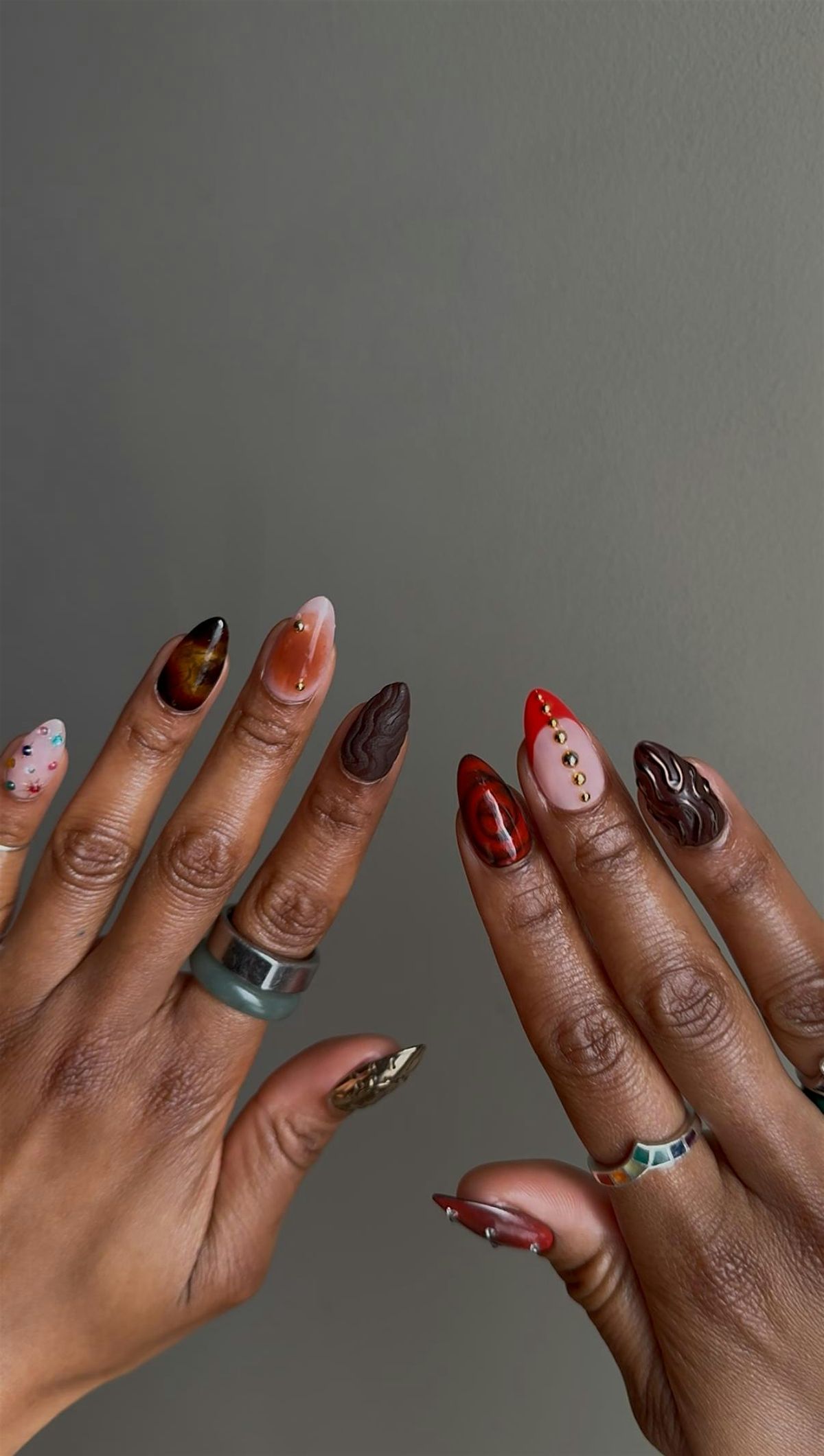 This month, we’re designing press-ons that balance autumnal flair with playful rebellion; a little glam, a little mischief. Think rich, moody tones, unexpected pops of texture, and statement details that feel effortlessly wearable.