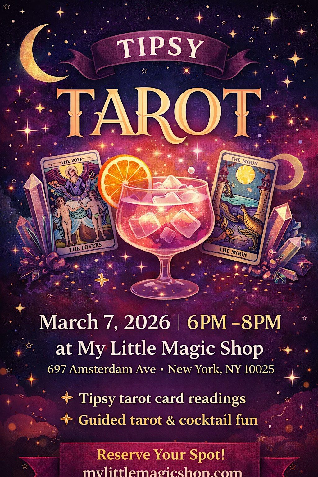 Join me at My Little Magic Shop on March 7, 2026 (my birthday weekend!) and sip, shuffle, and uncover the messages waiting for you in this magical tarot gathering!