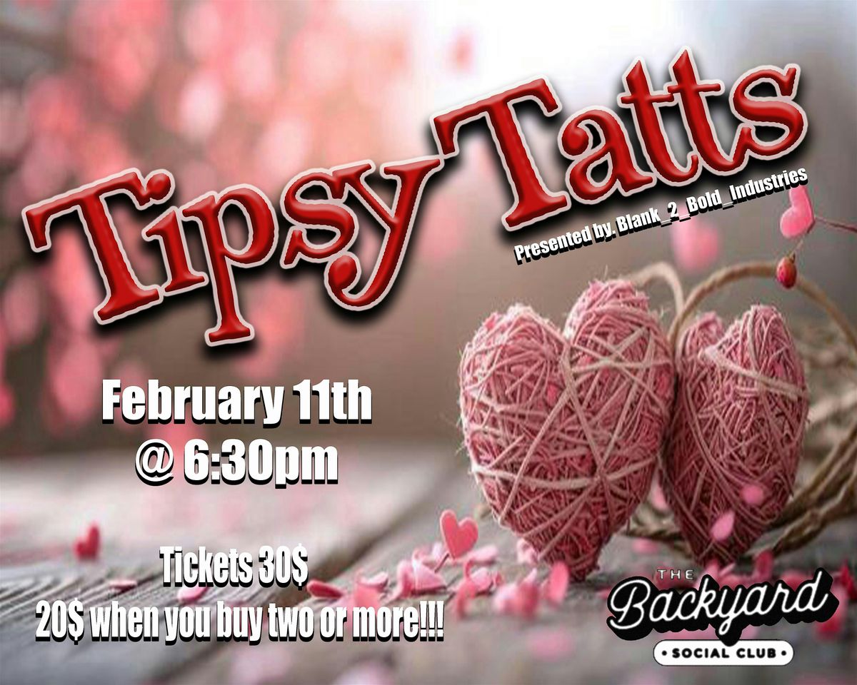 Don't miss out on this epic event brought to you by Blank 2 Bold industries TiPsY TaTts. Grab your friends and get ready to have a blast at TiPsY TaTts!