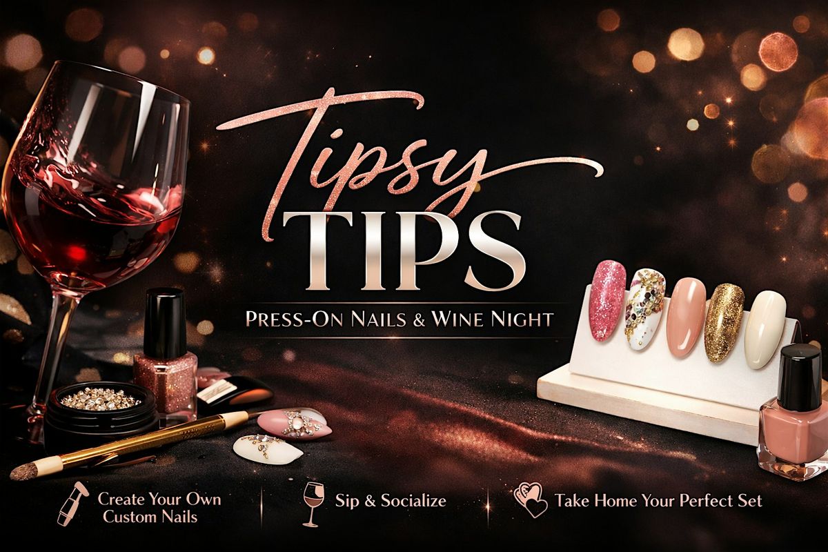 At Tipsy Tips, you’ll sip wine while designing your own custom press‑on nail set guided by veteran nail techs in a relaxed, social atmosphere.