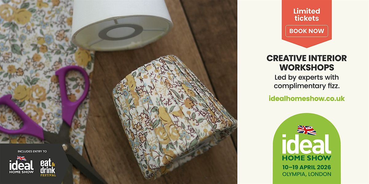 Your ticket includes entry to this one hour workshop with complimentary fizz, as well as entry to the Ideal Home Show on Friday 10 April 2026.