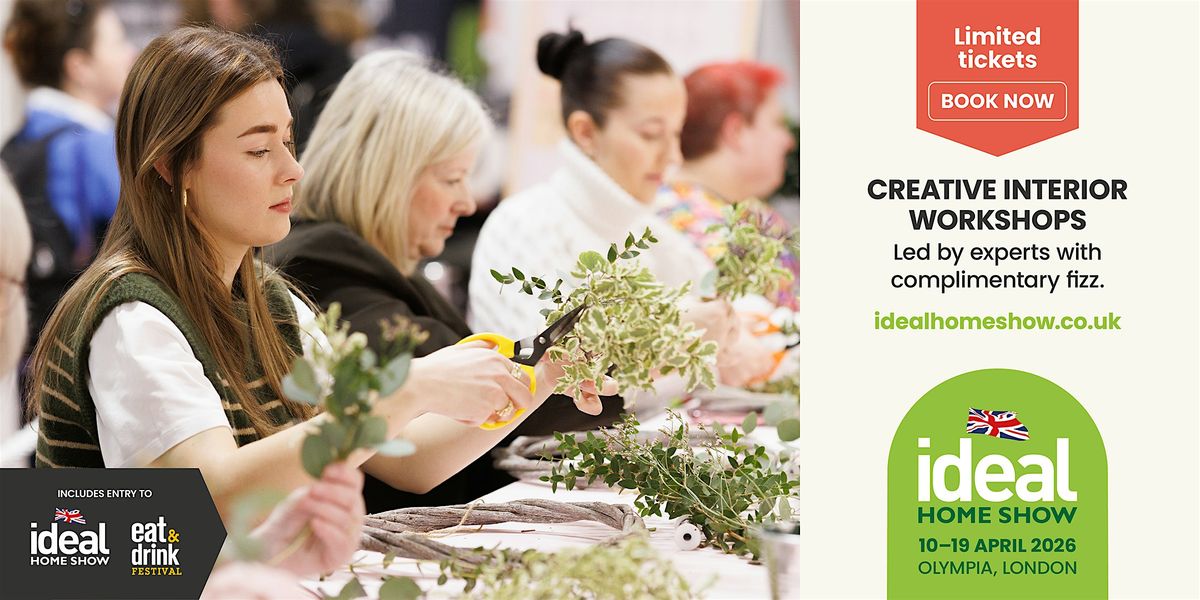 Your ticket includes entry to this one hour workshop with complimentary fizz, as well as entry to the Ideal Home Show on Friday 10 April 2026.