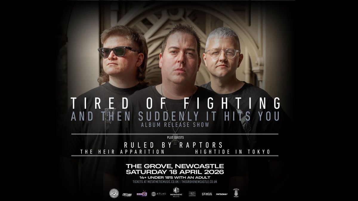 Newcastle’s own Tired of Fighting return to The Grove to unleash their long-awaited debut album - And Then Suddenly Hits You - in a special hometown release show. Blending explosive emo-punk energy with huge, heartfelt storytelling, the band channel early-00s emo influences like Motion City Soundtrack and Taking Back Sunday, fused with the punch of Paramore and the soul of The Gaslight Anthem. Having risen from local favourites to one of the North East’s most talked-about unsigned bands—touring the UK and sharing stages with Mallory Knox, Trash Boat and Heriot—this is set to be an emotional, high-energy celebration you won’t want to miss.Support from: Ruled By Raptors, The Heir Apparition, and Hightide In Tokyo.?si=oIbUgwvuikPLhdHO