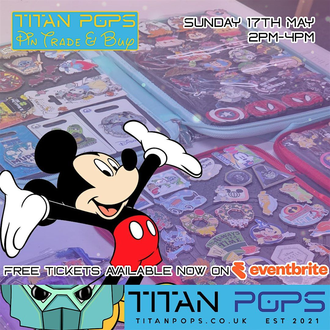 Welcome to Titan Pops Disney Pin Buy & Trade event at Titan Pops! Join us on Sunday 17th May 2026 at 2:00 PM to buy, trade, and chat about your favourite Disney pins. It's a great opportunity to meet fellow collectors and expand your collection. Don't miss out on the fun and magic of Disney pins! See you there!