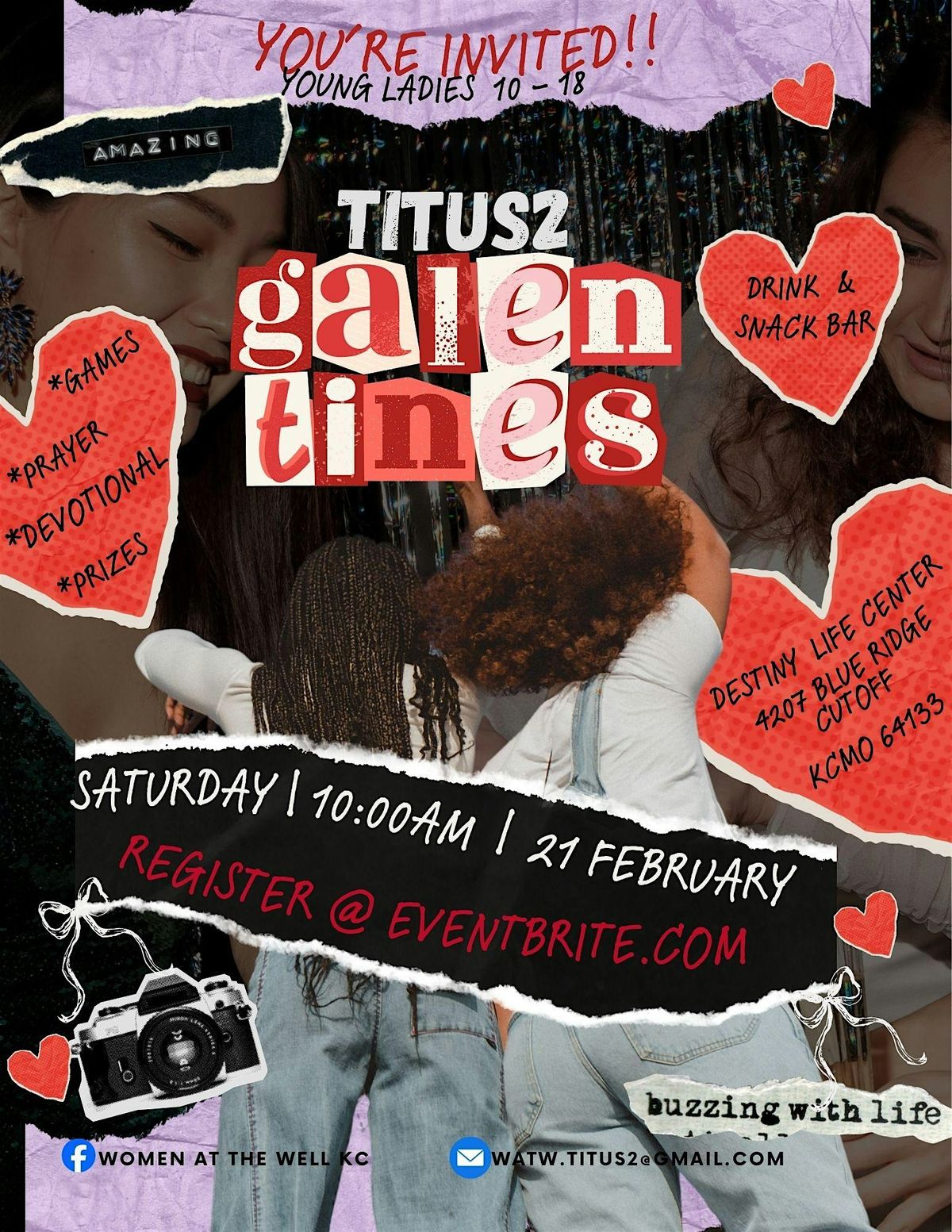 Galentines for young ladies ages 10-18! Join us as we discuss Gods Love and have fun doing it! For more info: Teresa [email protected].About this Event