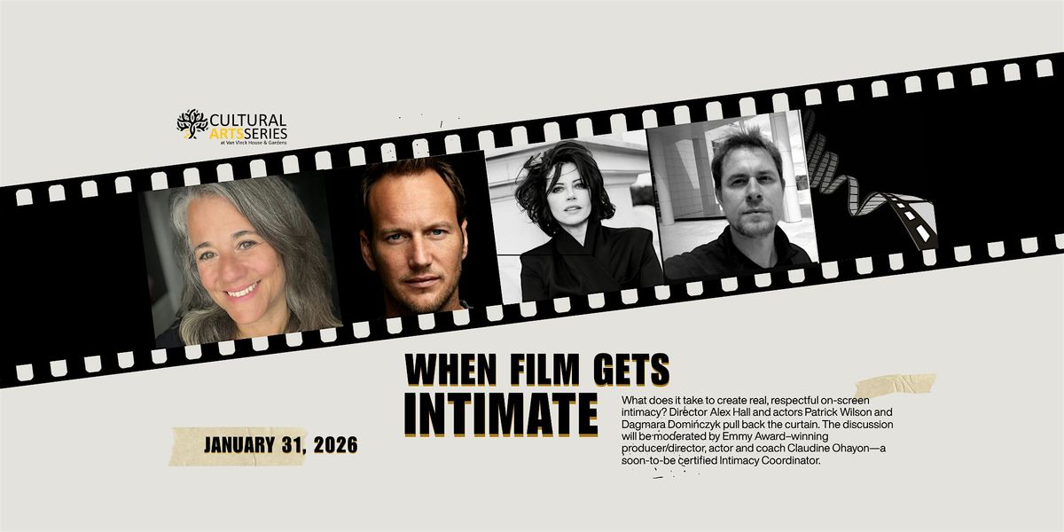 Tonight's in-person Speaker Event, which is presented in partnership with Montclair Local, is titled “When Film Gets Intimate,” and will highlight a panel featuring Alex Hall, Director, Patrick Wilson, actor, and Dagmara Domińczyk, actor. Moderated by Claudine Ohayon, Emmy Winner. Producer/Director. Actor. VO Coach. Intimacy Coordinator for Film & Television.