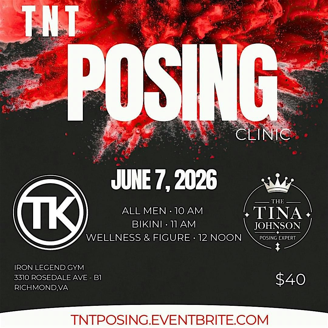 Join us on June 7, 2026 to learn from seasoned coaches, Tina and Trey (TNT) and take your posing and show prep game to the next level. Whether you're a beginner or a seasoned competitor, this clinic is for you!