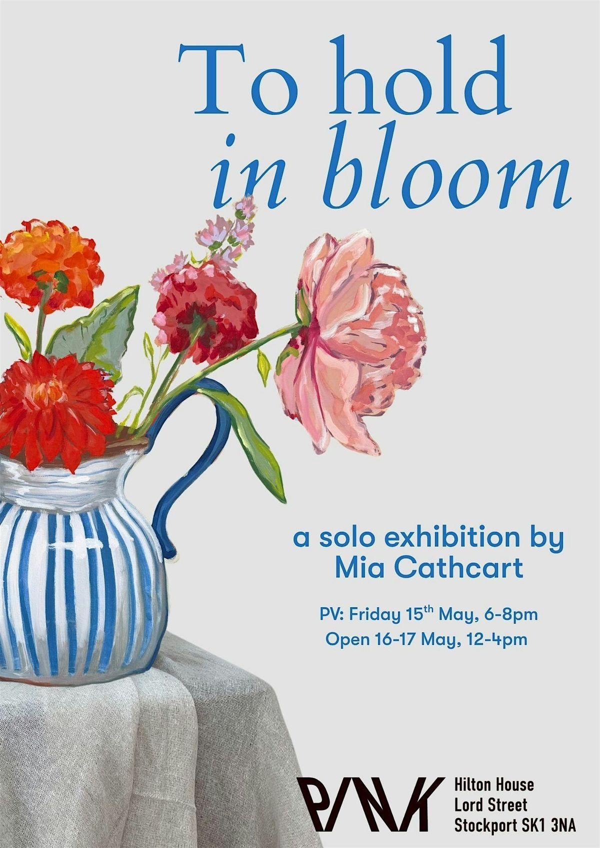 ‘To hold in bloom,’ is the debut solo show of artist Mia Cathcart. The show brings together a collection of works painted through pregnancy, postpartum and into motherhood. The work is a celebration of transition and becoming, honouring the small moments in everyday rituals. The exhibition considers the things women hold; a baby in arms, friendships, a glass of wine, flowers, a meal, the home.