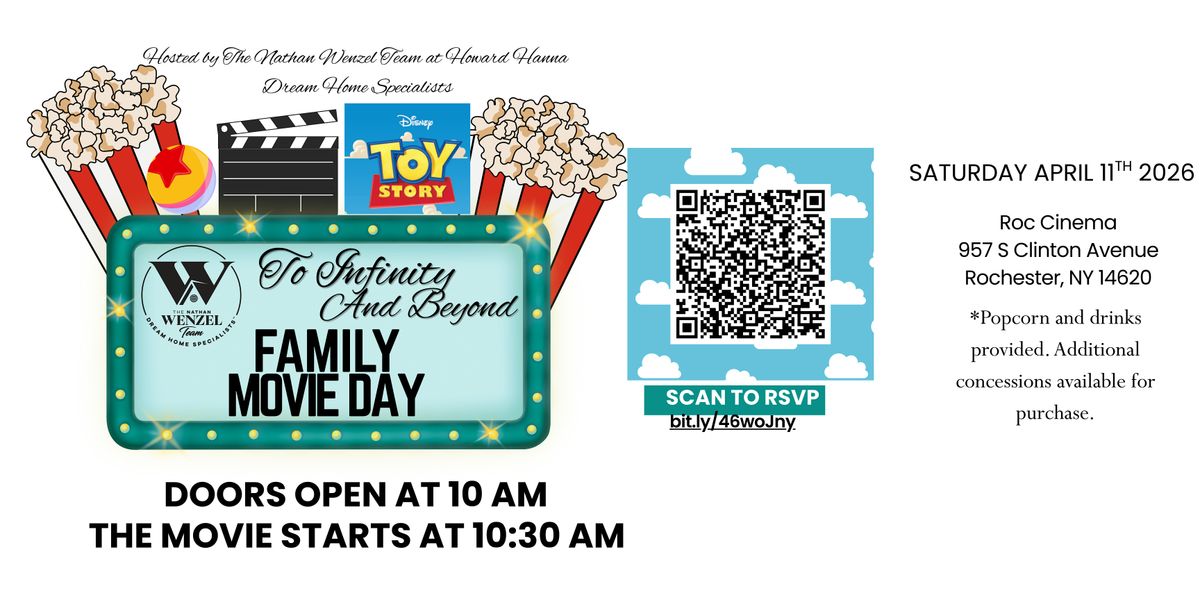 To Infinity and Beyond Family Movie Day with The Nathan Wenzel Team at Howard Hanna features the classic Toy Story Movie.
