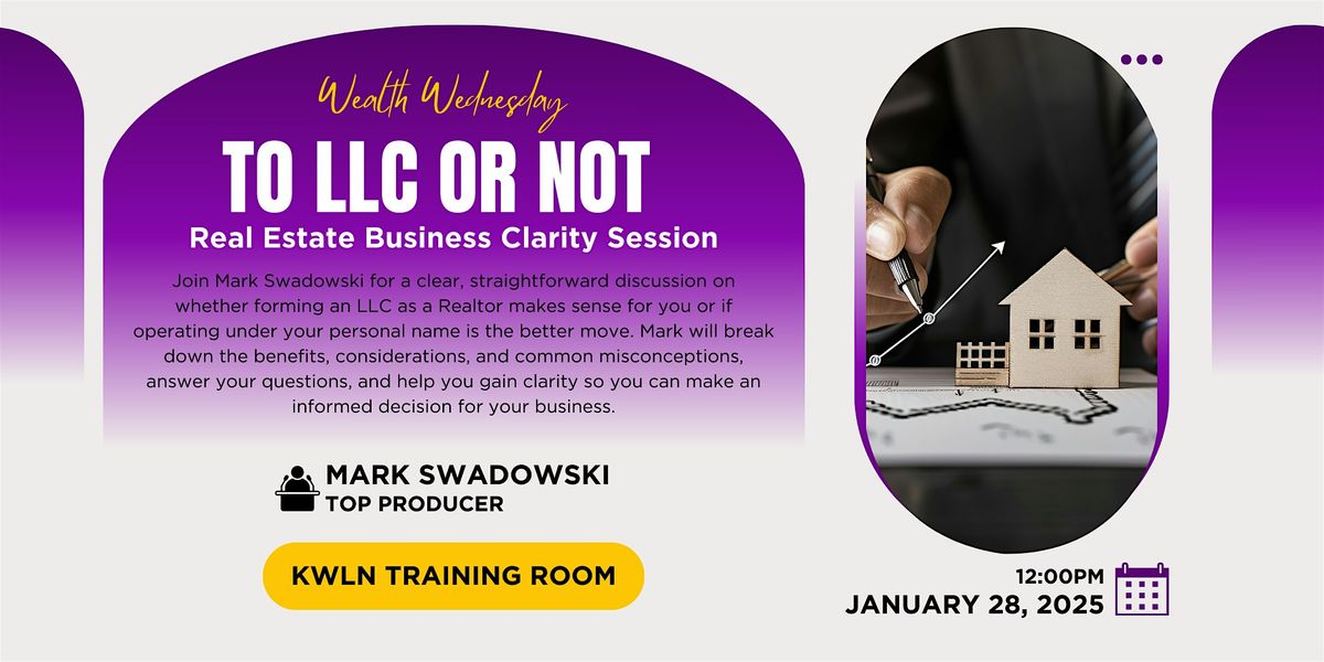 Join Mark Swadowski for a clear, straightforward discussion on whether forming an LLC as a Realtor makes sense for you or if operating under your personal name is the better move. Mark will break down the benefits, considerations, and common misconceptions, answer your questions, and help you gain clarity so you can make an informed decision for your business.