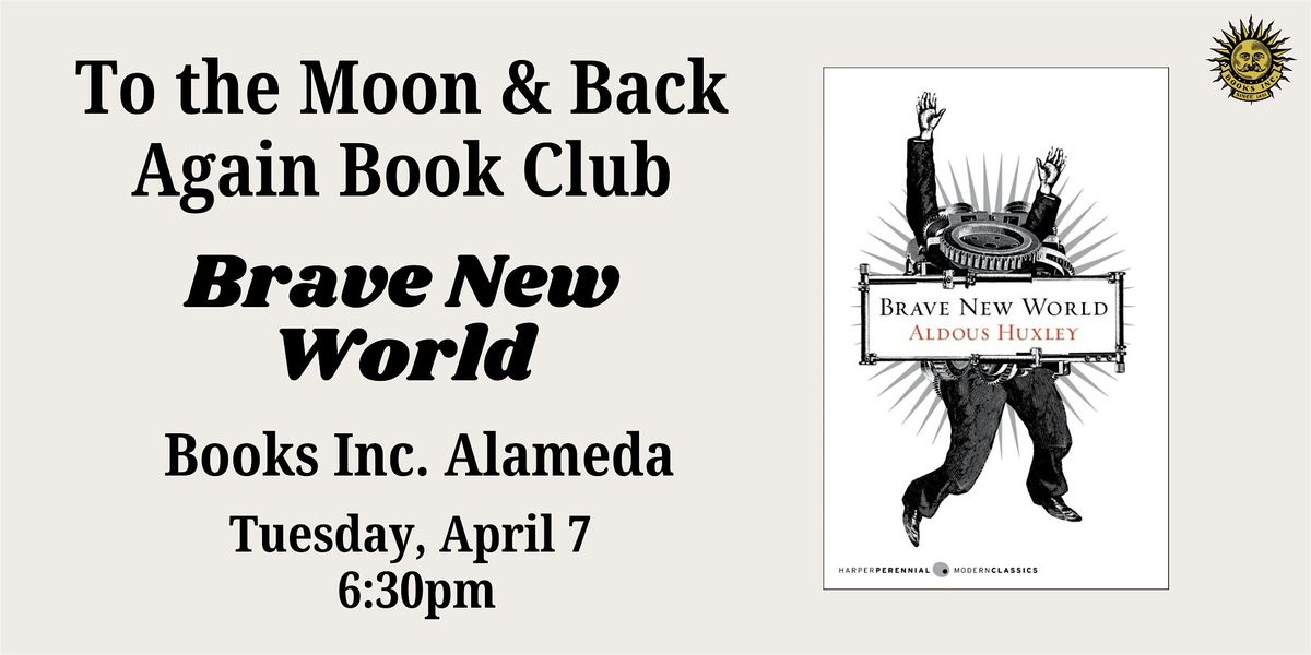 Join the To the Moon and Back Sci/Fi / Fantasy Book Club at Books Inc. Alameda to discussing the novel, Brave New World by Aldous Huxley.About this Event