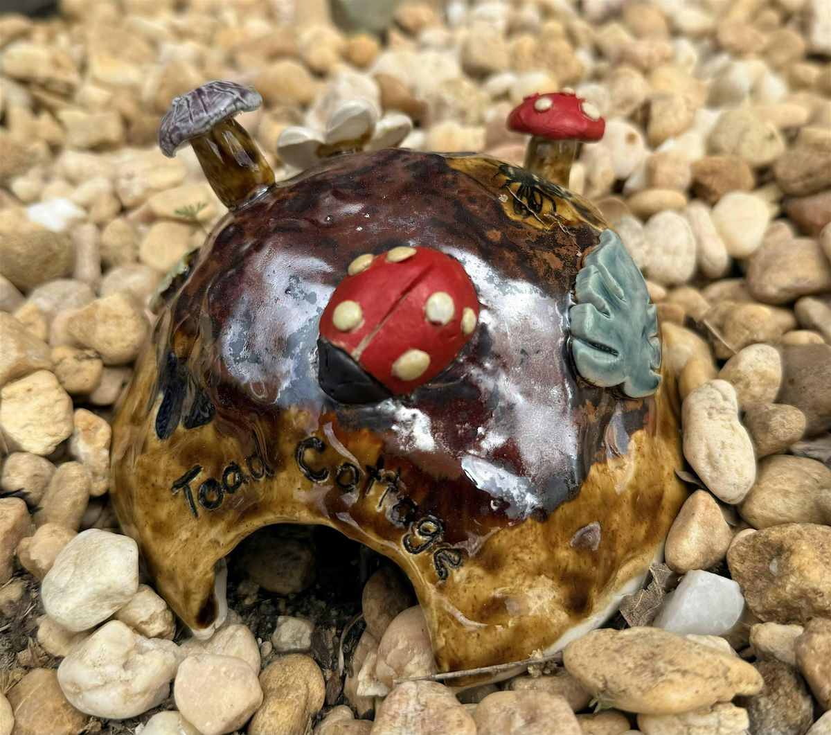 In this cozy, hands-on class, you’ll sculpt your very own Toad Abode—a charming ceramic shelter for garden toads, curious critters, or simply a bit of storybook wonder in your space. Using hand building techniques, we’ll shape organic forms, add playful textures (think mushroom caps, leafy doors, and earthy details), and bring each little dwelling to life with your own creative touch.