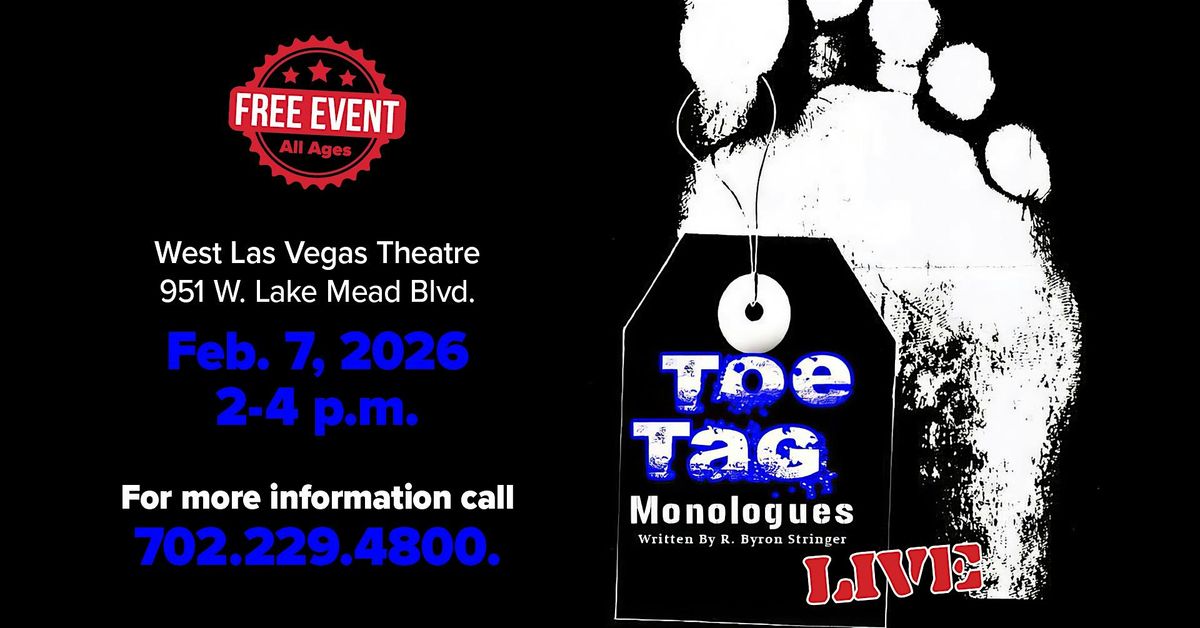 The West Las Vegas Arts Center presents Toe Tag Monologues Live. Written by retired Las Vegas Metropolitan Police Officer R. Byron Stringer, it is based on real-life and death situations our youth face daily. Stringer wrote about the stuff that happens behind the yellow tape in crime scenes. The stuff our kids see everyday....some of it they don’t just see...they are living it!