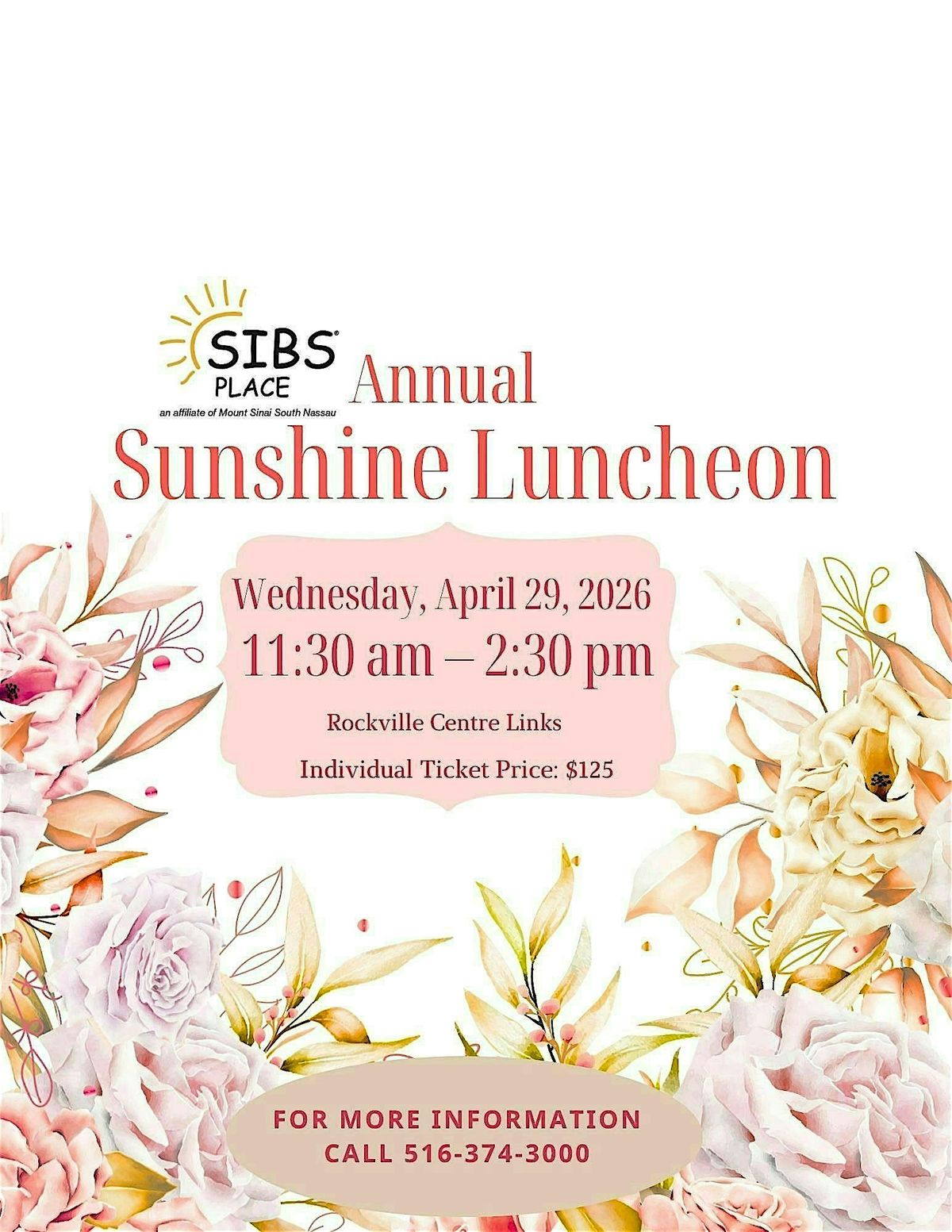 Join us at the Rockville Links Club for an unforgettable afternoon of gratitude, mindfulness, and sunny moments in support of SIBSPlace. As a local Rockville Centre charity, SIBSPlace proudly celebrates the generosity and connectedness of our community through the Sunshine Luncheon.