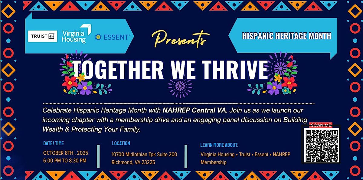 Join Truist, Virginia Housing & Essent for an exciting evening as welcome the incoming chapter of NAHREP Central Virginia and their Membership Drive celebrate Hispanic Heritage Month!