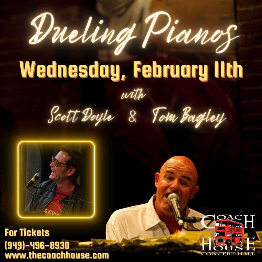 β¨ Enter a world of endless possibilities at Tom Bagley's Dueling Pianos, where every moment tells a story! ποΈ The stunning Coach House - Capistrano in vibrant San Juan Capistrano, CA transforms into a realm of wonder on April 7th, 2026 at 04:00 PM. π They have crafted an experience that goes beyond the ordinary, combining elements of surprise, delight, and pure entertainment. Every detail has been thoughtfully considered to ensure your journey with us is nothing short of extraordinary. π― Join fellow adventure seekers and memory makers in this celebration of imagination and innovation. π Reserve your spot today and be part of something truly special!http://maps.seatics.com/GeneralAdmissionEvent_2018-10-03_1713_SVGC_tn.gif