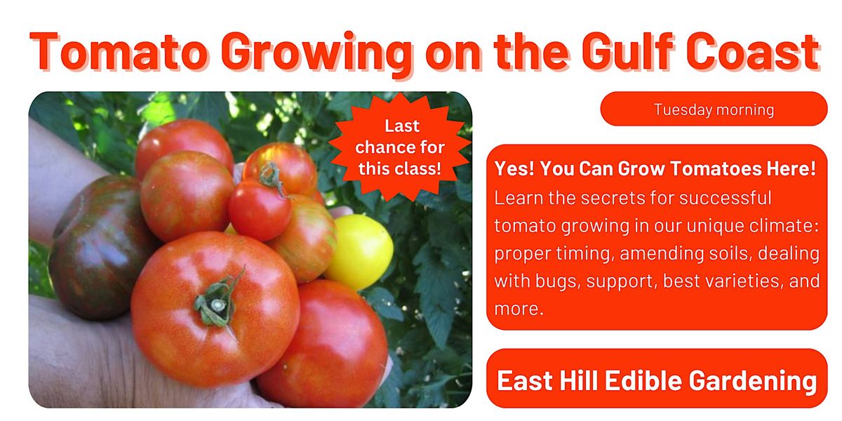 Join us for Tomato Growing on the Gulf Coast and learn all the secrets to growing delicious tomatoes in our coastal climate. This is your chance to get expert advice from seasoned gardeners who know their stuff. Discover the best varieties of tomatoes to grow, the ideal growing conditions, and the secret tips for preventing pests and diseases. Don't miss this opportunity to meet fellow tomato enthusiasts and share your own experiences. Whether you're a beginner or experienced gardener, this event is for you. So grab your gardening gloves and get ready to dig in!