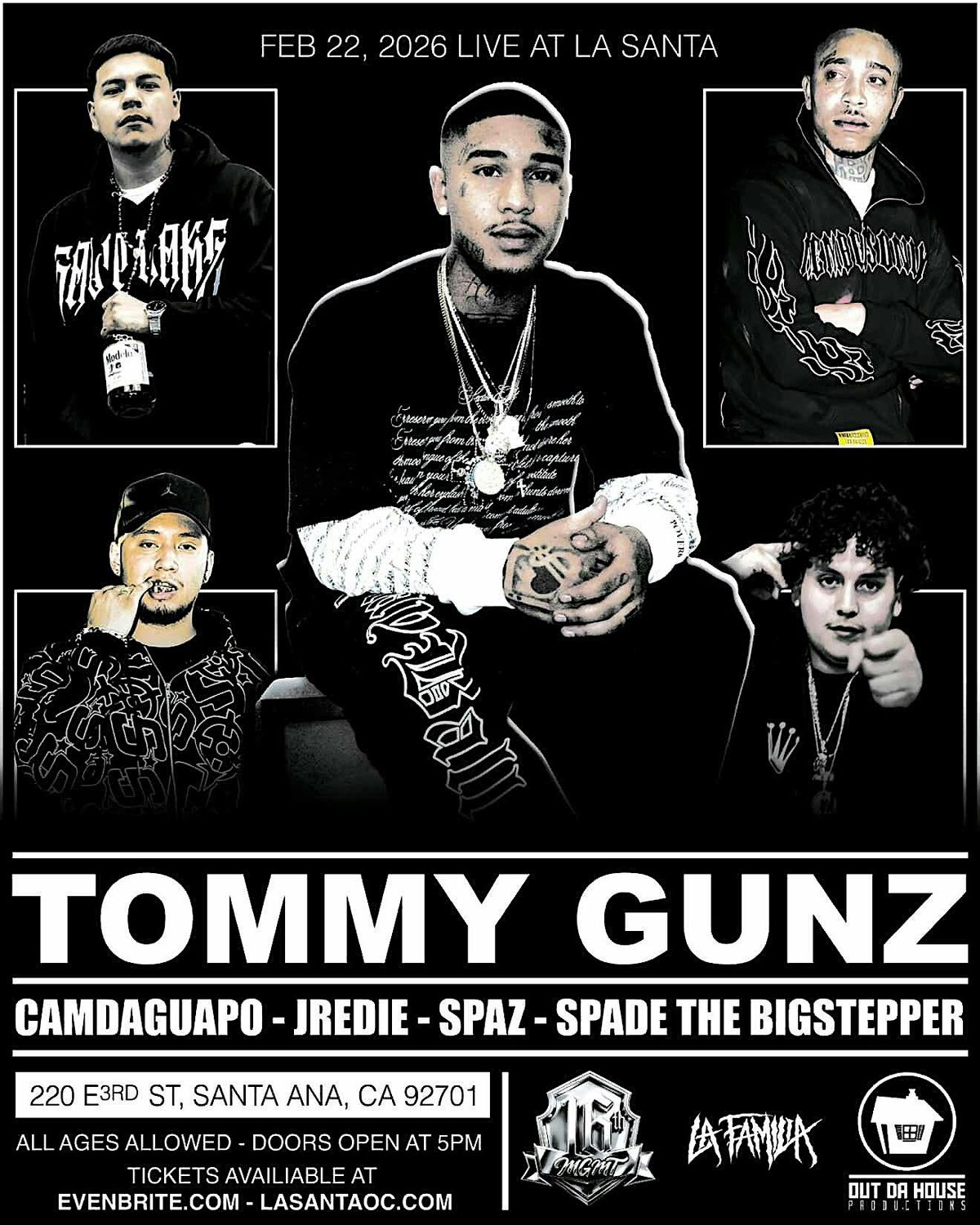 Get ready for an epic night as LA SANTA hosts TOMMY GUNZ, CAMDAGUAPO, SPAZ, SAPDE THE BIGSTEPPER, and JREDIE performing in person.
