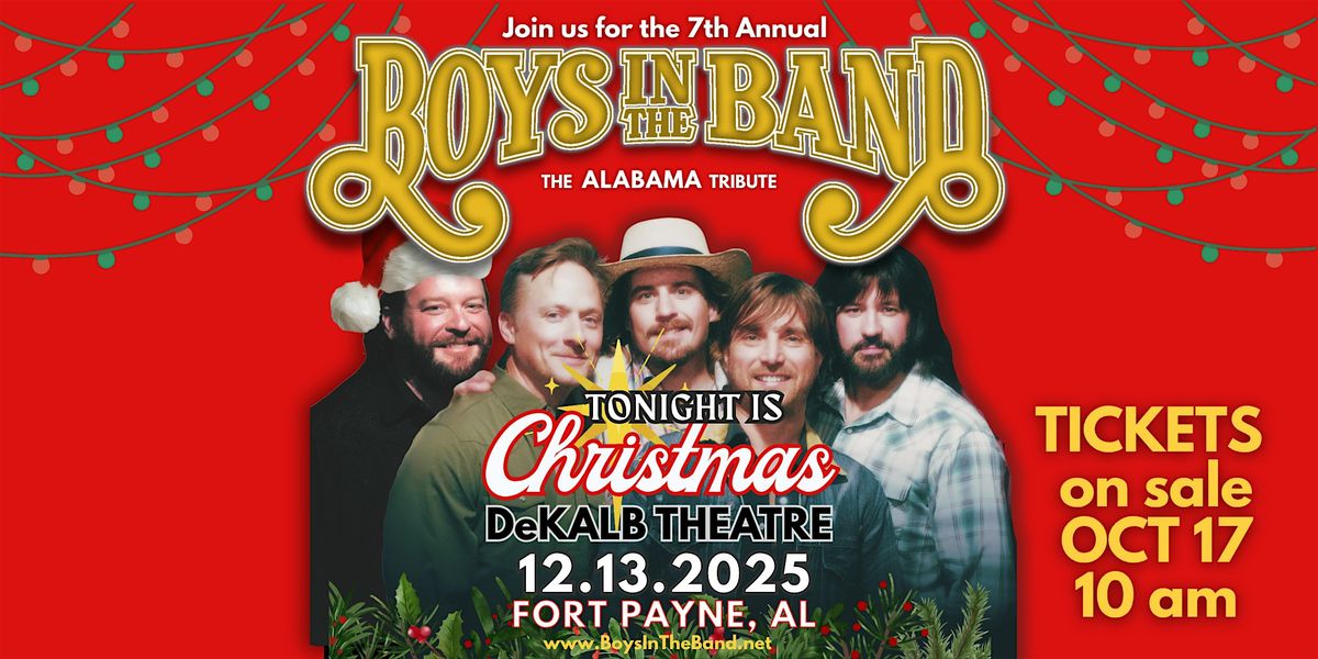 Boys in the Band - The Alabama Tribute are excited to return to the Dekalb Theater for our 7th Annual Christmas show! A portion of proceeds will go to benefit the Alabama June Jam Foundation serving a variety of causes within our community. We thank you all for your support over the past six years, and this is our favorite show of the year!