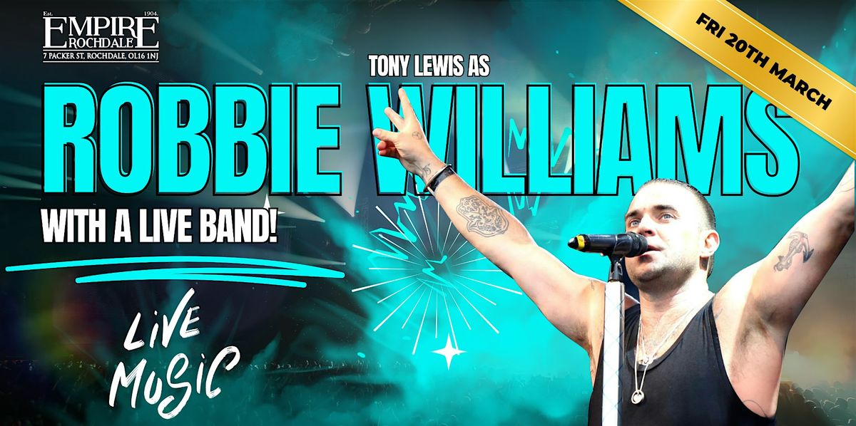 Tony as Robbie brings the ultimate tribute to Robbie Williams to Empire Rochdale, delivering all the charisma, vocals and massive singalong anthems that made Robbie a global superstar.