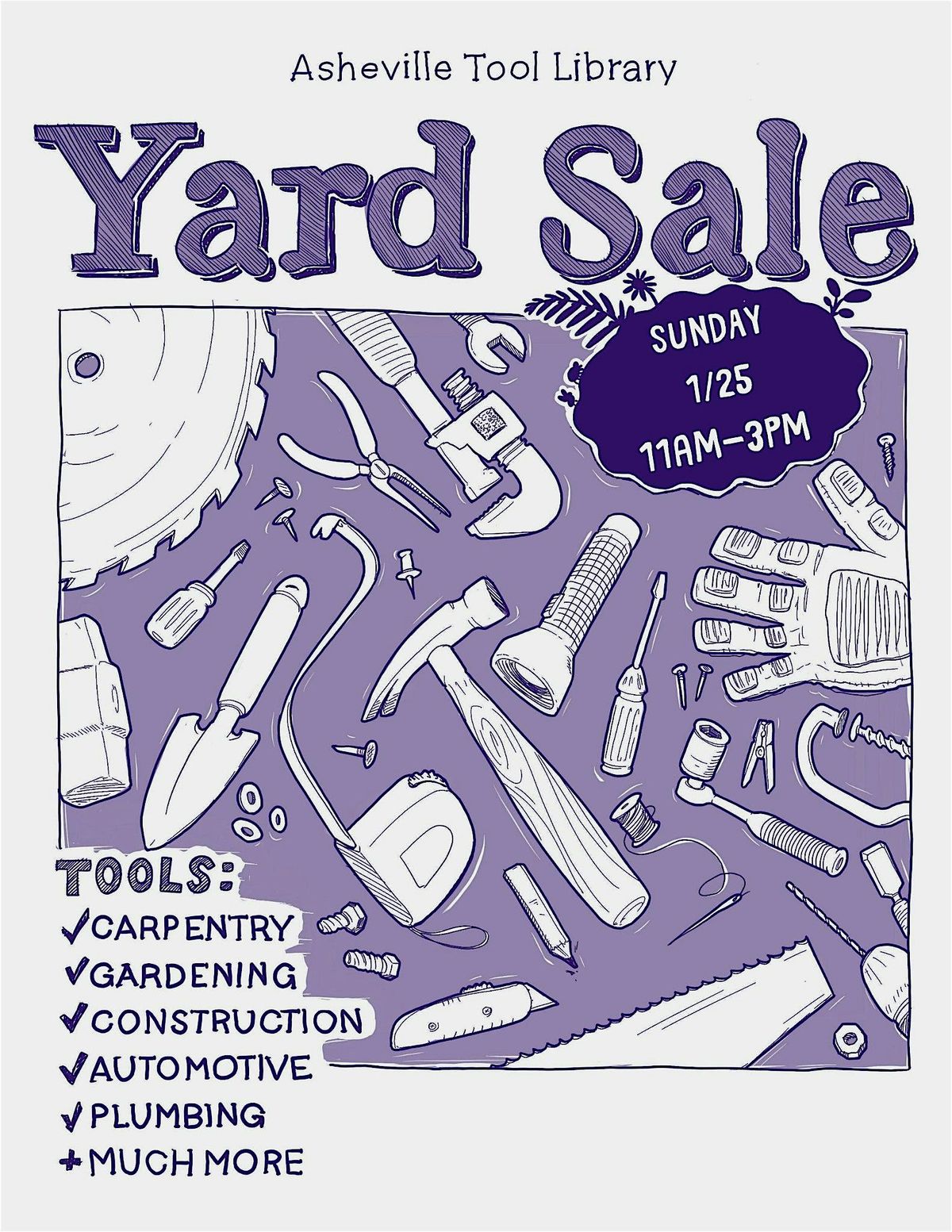 The yard sale will be from 11 am- 3 pm at 16 Smith Mill Rd, Asheville