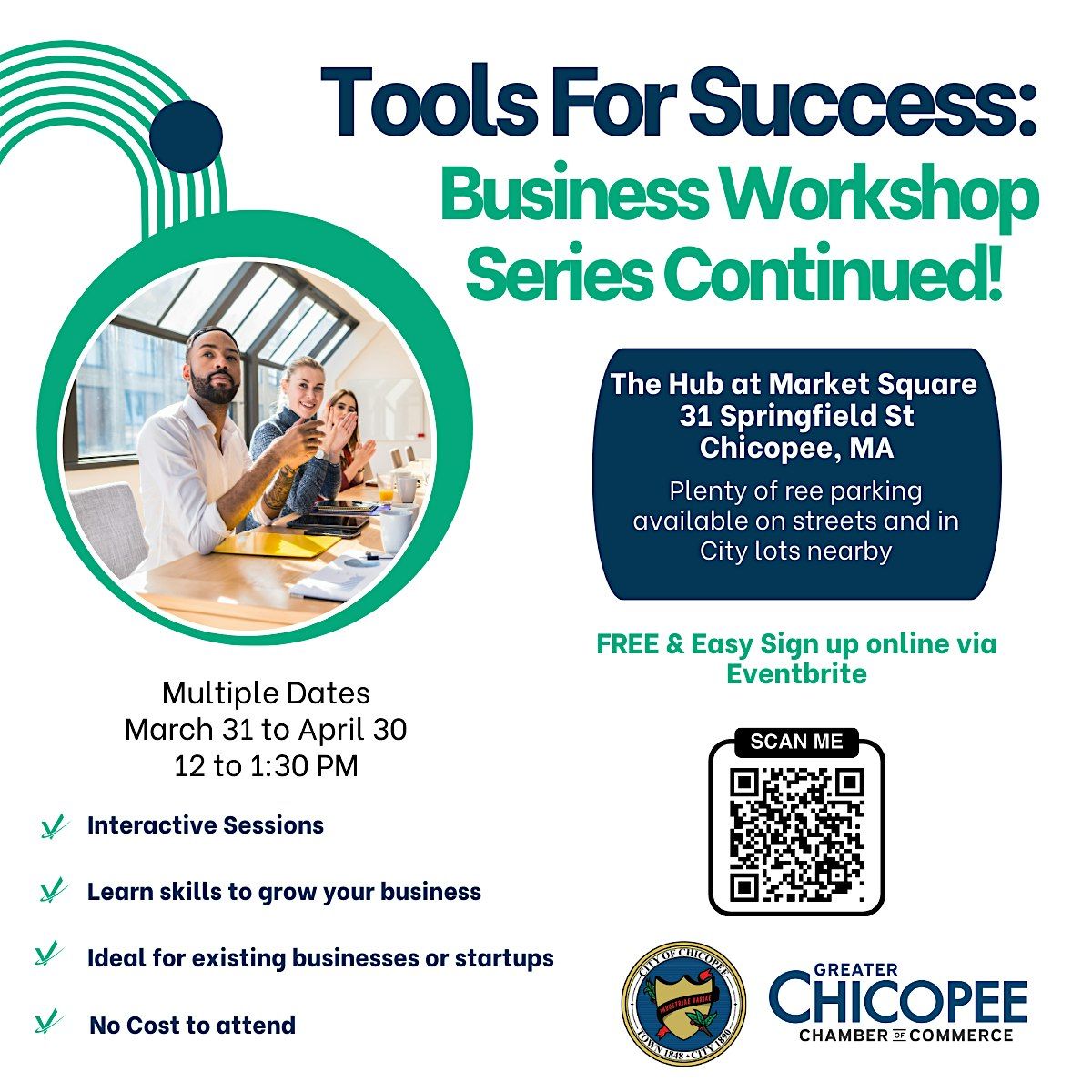Free parking in available in City lots and on the street in Chicopee Center. The main accessible entrance for The Hub is located in the rear of the building. See map below.