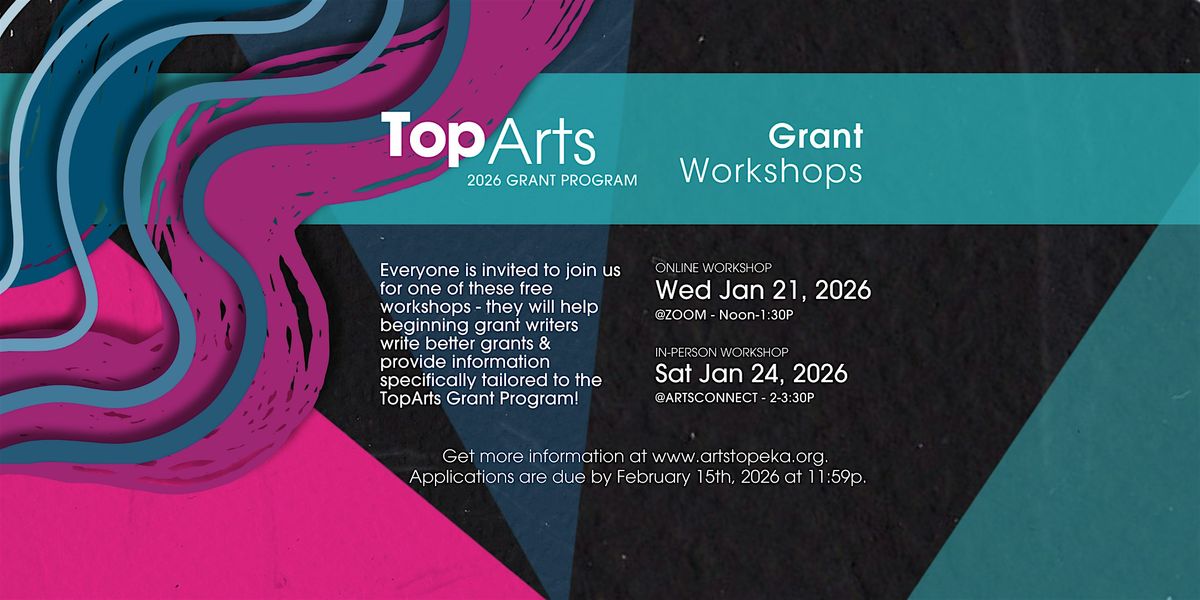 Write better grants! Whether you're writing for the TopArts Grant Program or another grant opportunity, please join ArtsConnect for this free workshop all about grant writing! These workshops are great for anyone who writes grants and will be specifically tailored to artists and arts organizations that are interested in applying for funding through the TopArts Grant Program. Grant applications for this program are due on Feb 15, 2026 and more information about the program can be found by clicking here.