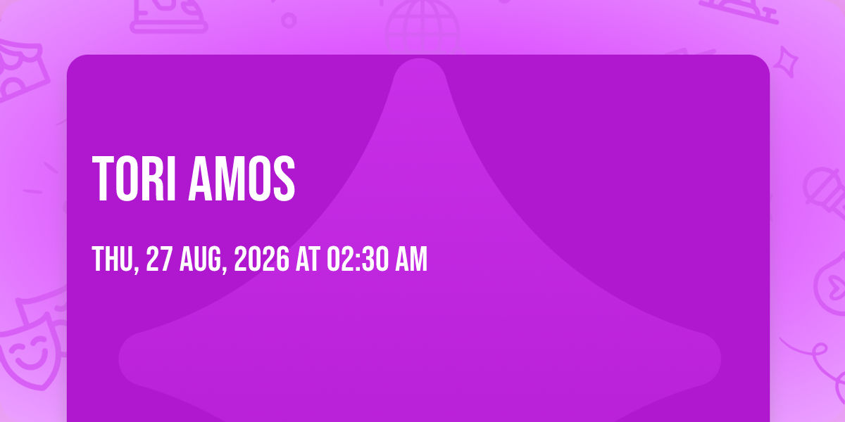 π Location: 32.7174, -117.162π Be part of history at Tori Amos, an extraordinary gathering that will captivate your imagination! ποΈ The prestigious San Diego Civic Theatre in San Diego, CA sets the stage for an unforgettable experience on August 27th, 2026 at 02:30 AM. β¨ They are bringing together the finest elements of entertainment and innovation to create moments that will take your breath away. From the moment you arrive, you'll be immersed in an atmosphere of wonder and excitement. π― This carefully planned event ensures every guest experiences something truly special. π Early booking is recommended for this must-attend event of the season!