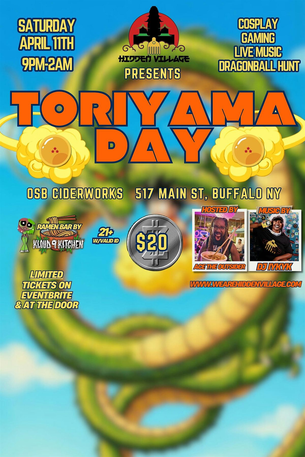 Buffalo's premier cosplay party brings our annual Toriyama Day event! Enjoy live music, gaming, cosplay contest and our signature ramen bar!About this Event