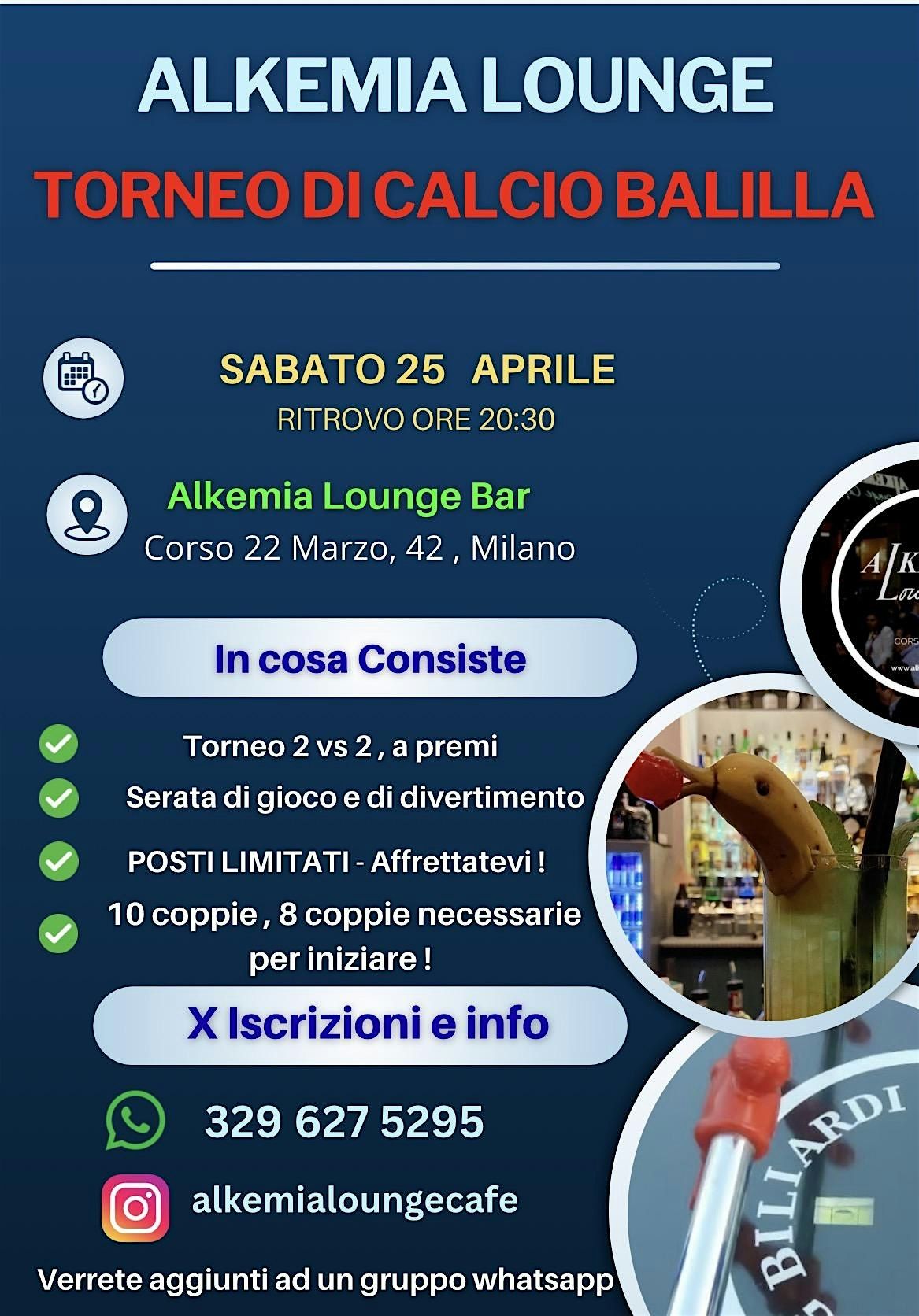 Sabato 25 aprile torna il Torneo di Calcio Balilla 2 vs 2 OPEN, aperto a tutti: che tu sia competitivo o semplicemente voglia divertirti, questo è l’evento perfetto.