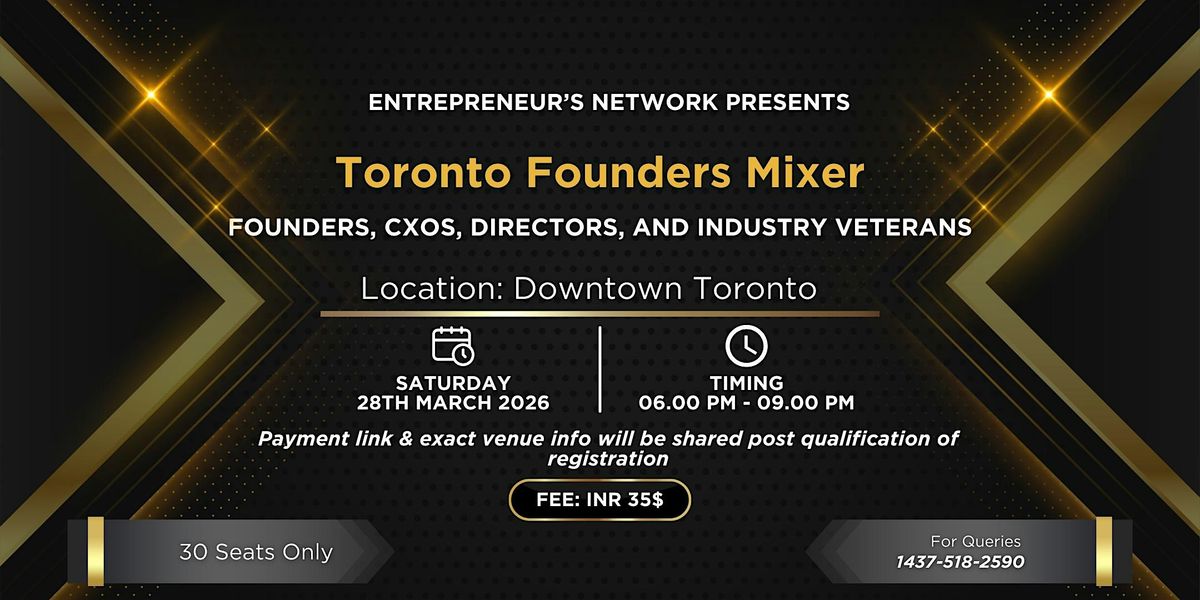 The Toronto Founders Mixer is a curated, small-format networking evening designed for founders and senior leaders who take networking seriously—not as a numbers game, but as a long-term investment.