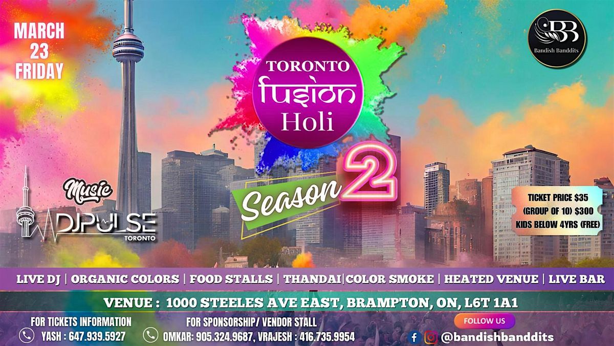 Get ready for an explosive burst of colors and festivities at TORONTO FUZION HOLI - Season 2, presented by the sensational !