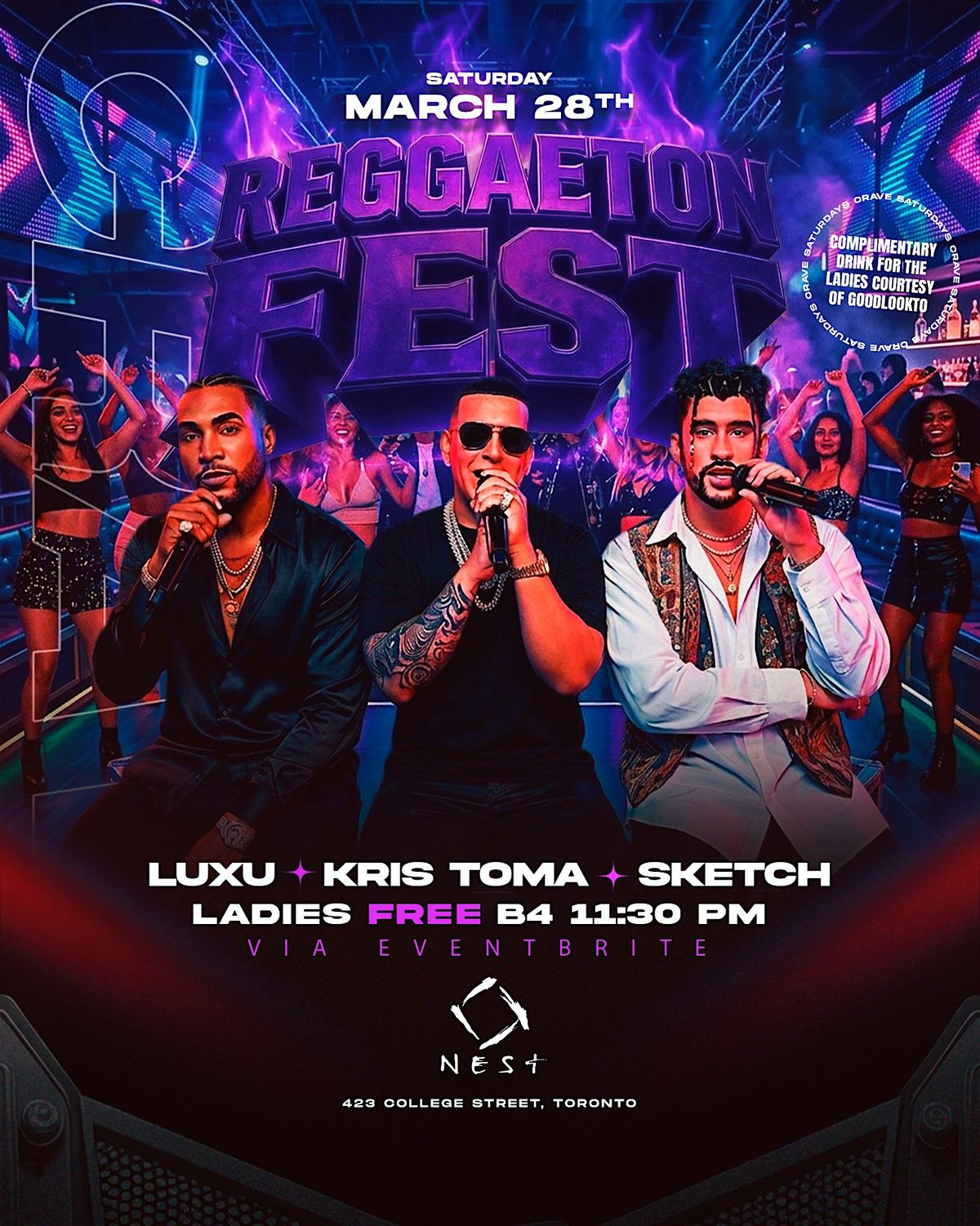 TORONTO REGGAETON FEST @ NEST| LADIES FREE +1 FREE DRINK|SAT, MAR 28